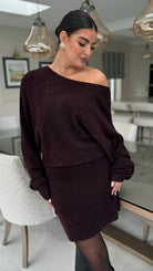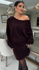 Slip into effortless style with the Robyn Plum Oversized Jumper Dress—your new go-to for cosy vibes and fashion-forward flair. Featuring a cheeky off-shoulder neckline, ribbed long sleeves, and a fitted ribbed skirt that hugs in all the right places, this piece strikes the perfect balance between relaxed and refined. Crafted from soft, sumptuous fabric, it's the kind of dress that feels like a warm hug while looking absolutely stunning. Perfect for lazy days that deserve a style upgrade.