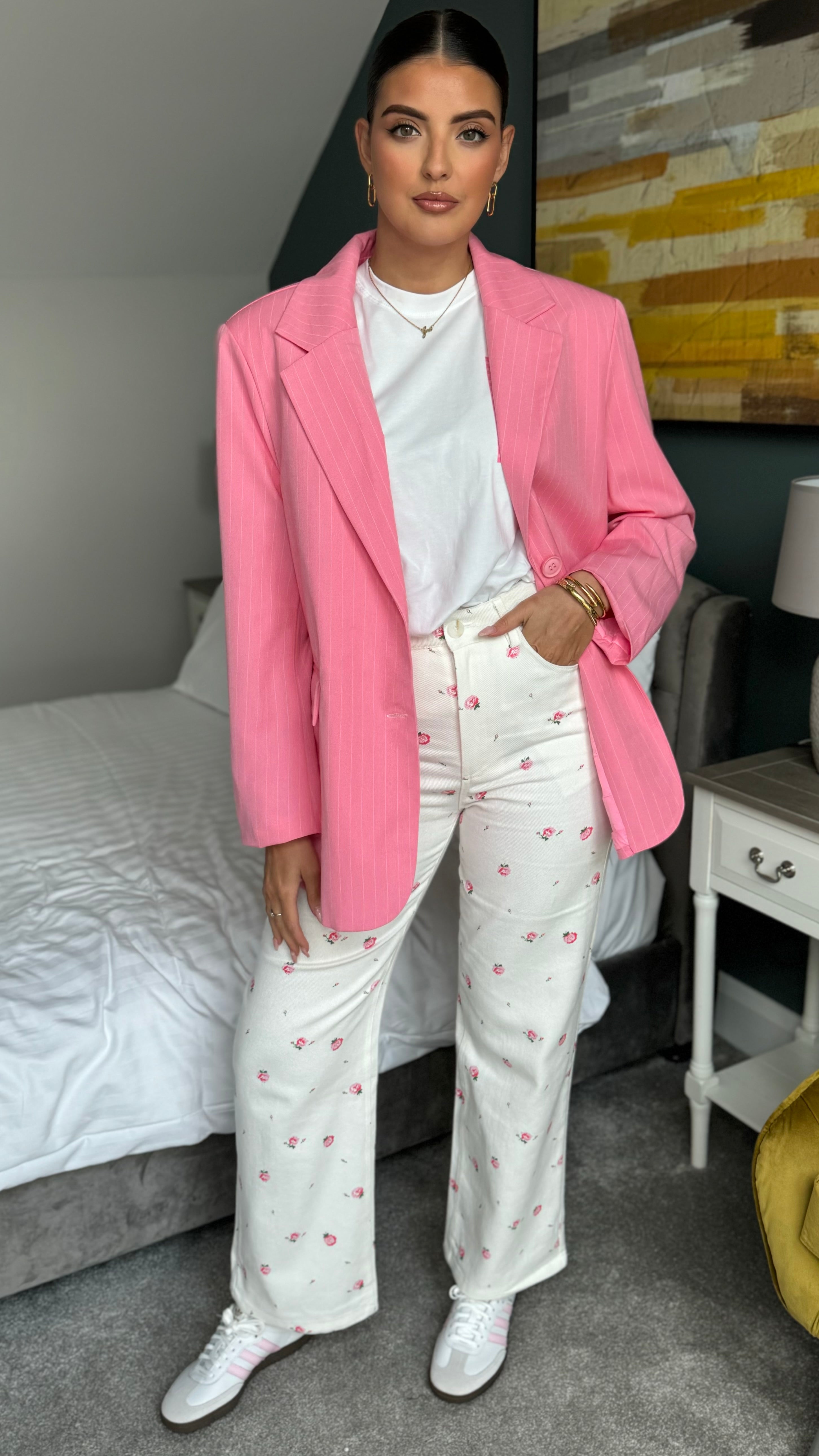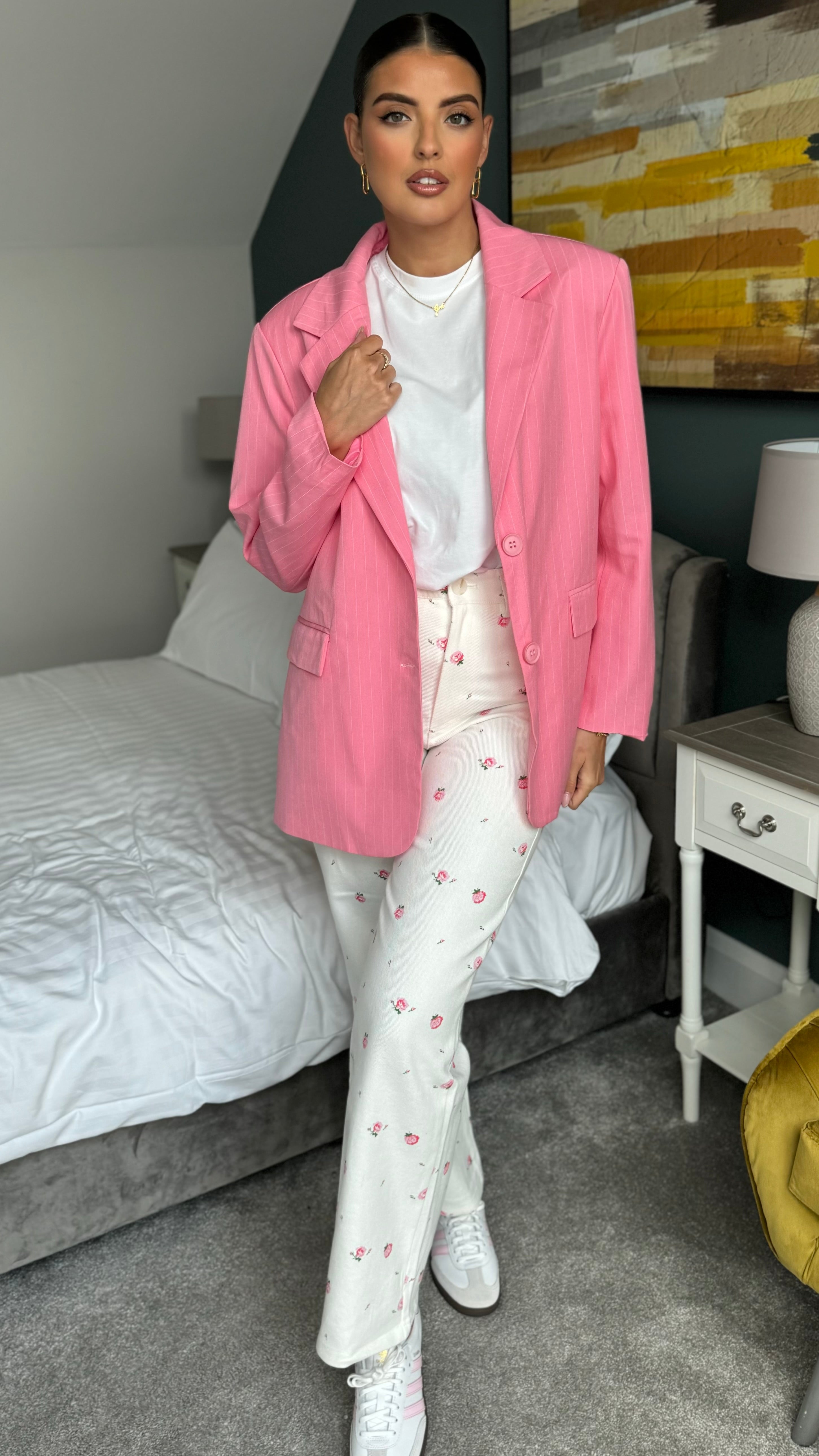 Rosalita Pink Oversized Pinstripe Blazer