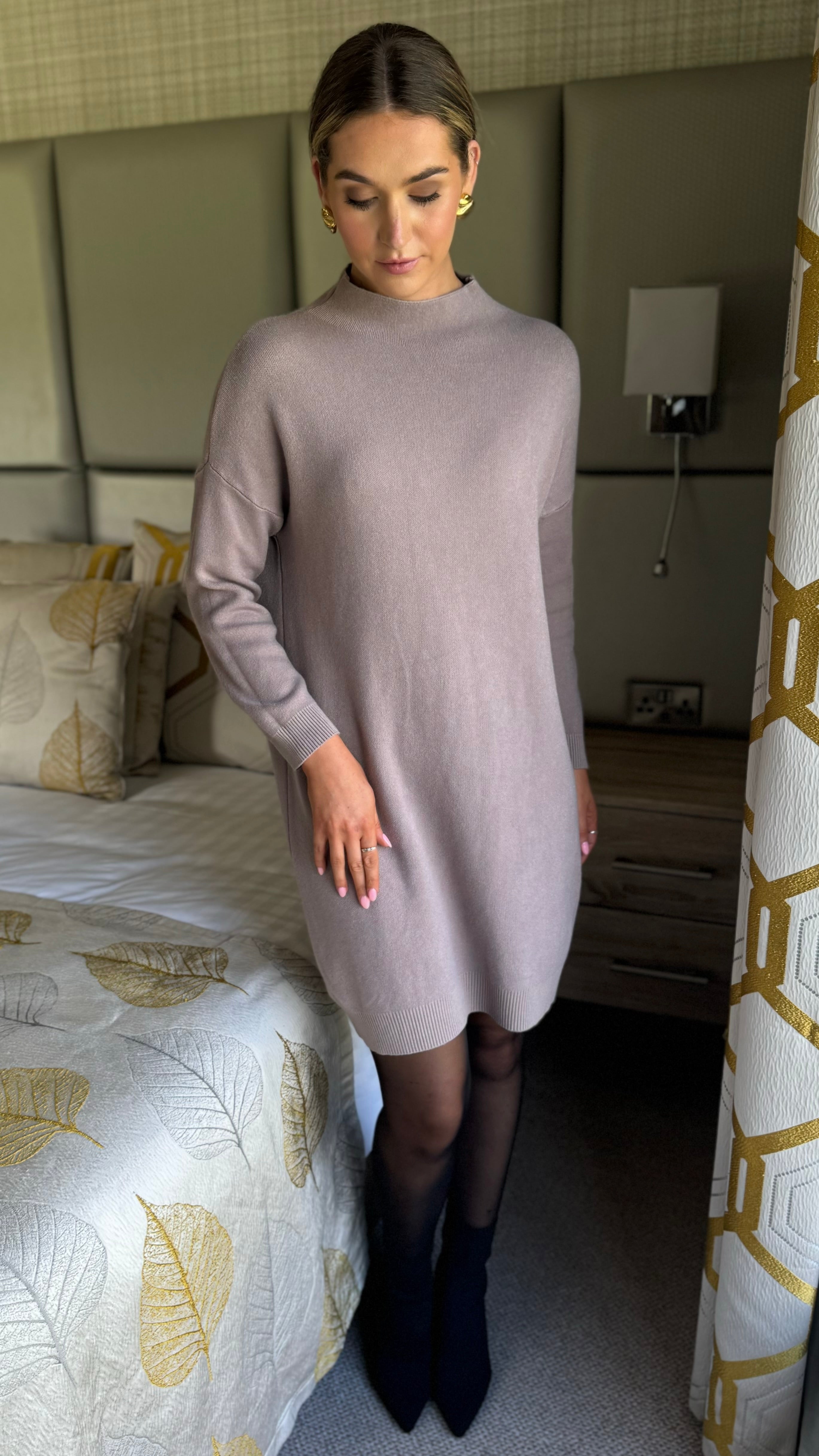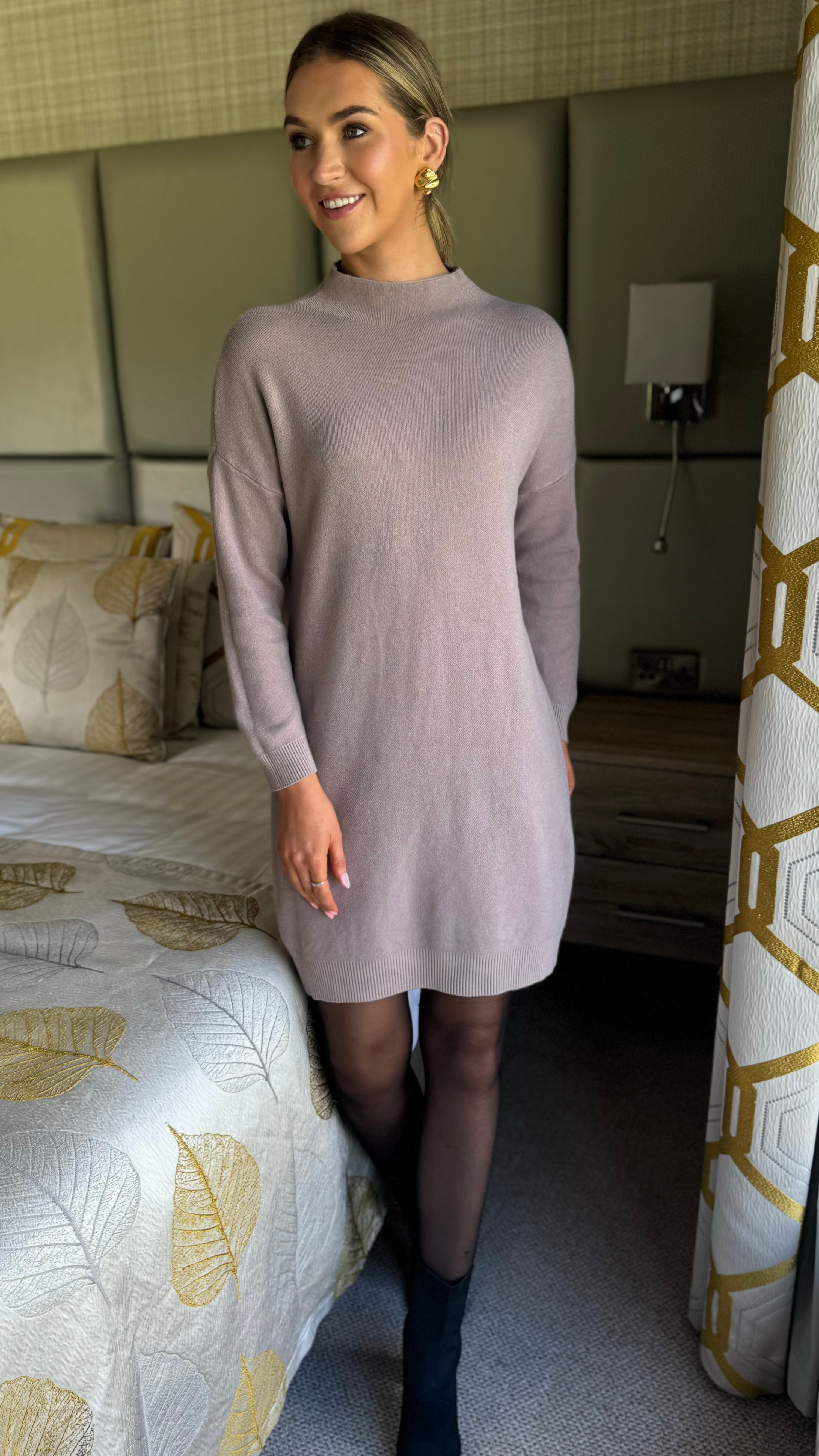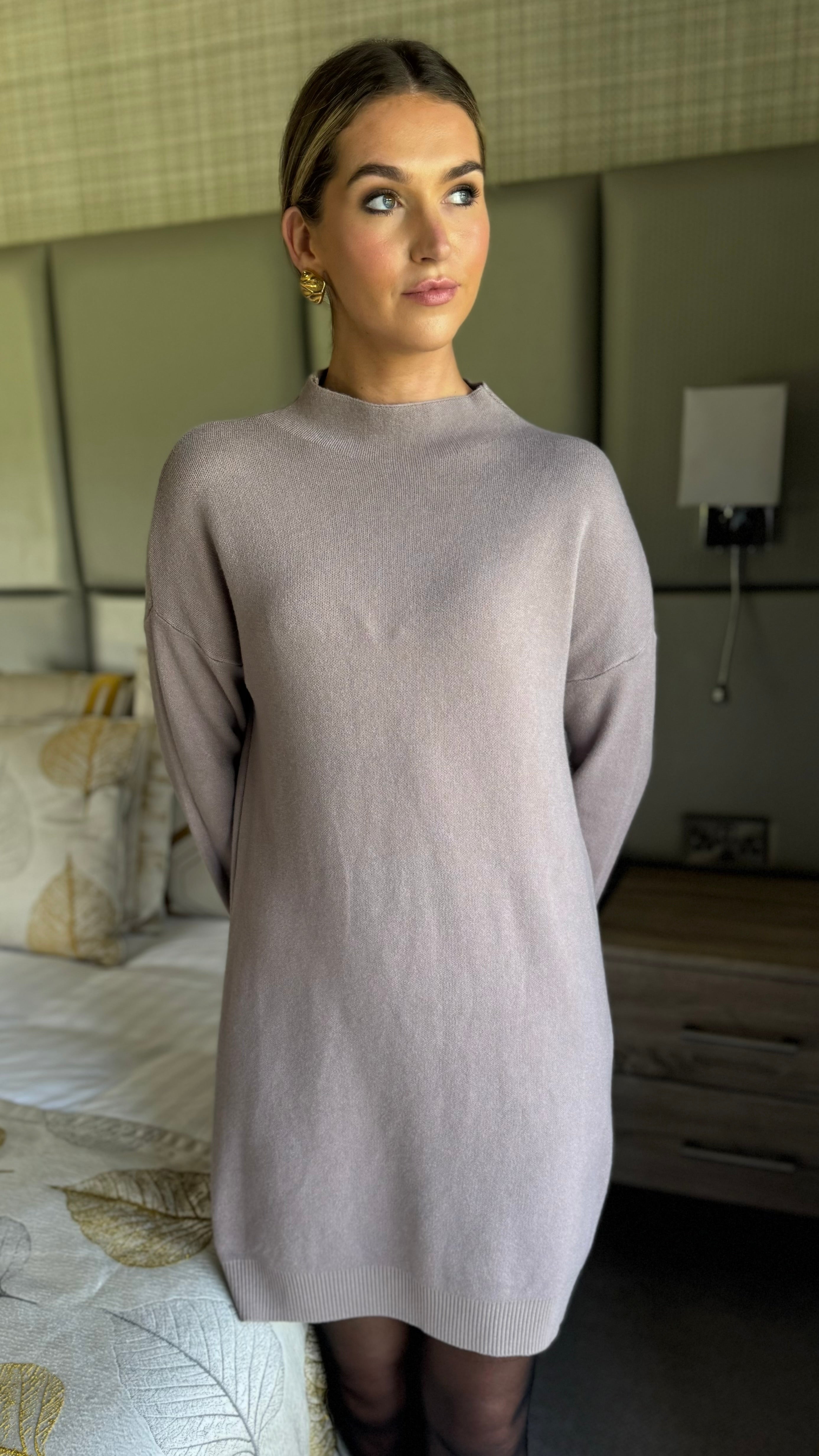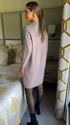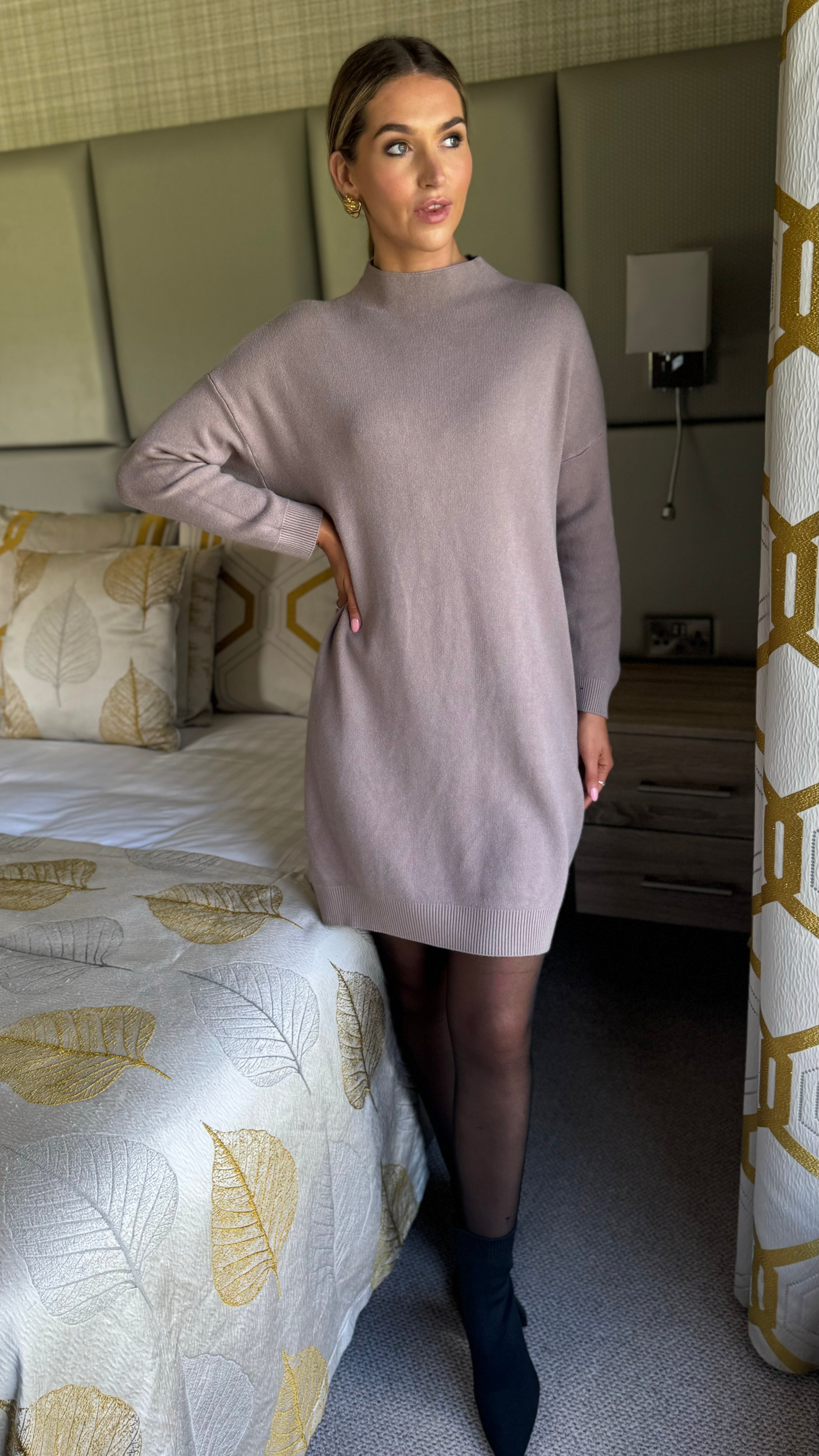 Wrap yourself in warmth and style with the Satanta Taupe Turtle Neck Jumper Dress. This knitted dress features a cozy turtle neck, perfect for those chilly days. Stay stylish and comfortable all season long!