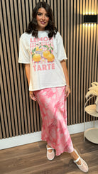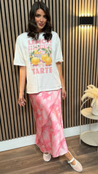 Savi Pink Abstract Print Satin Midi Skirt