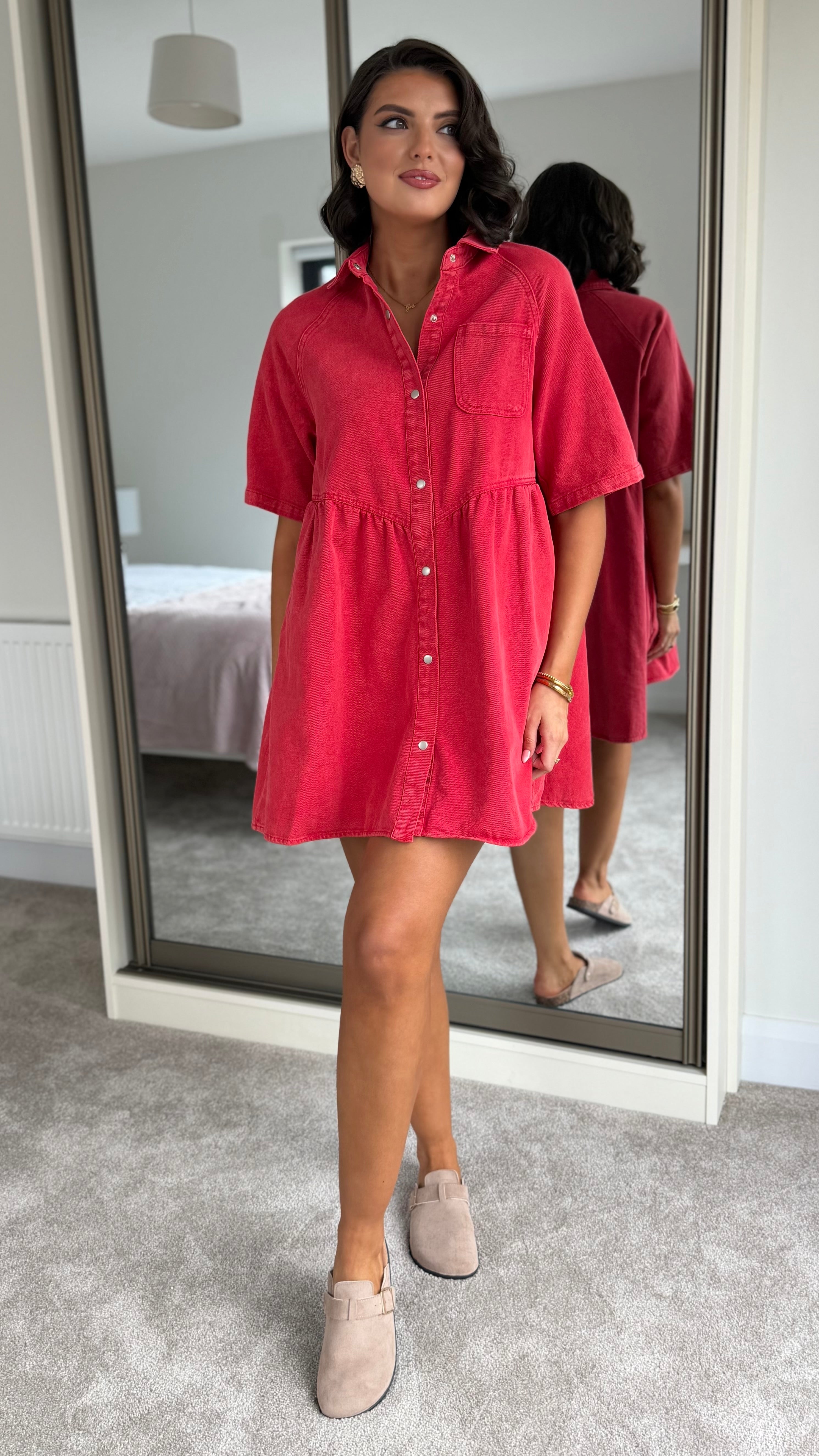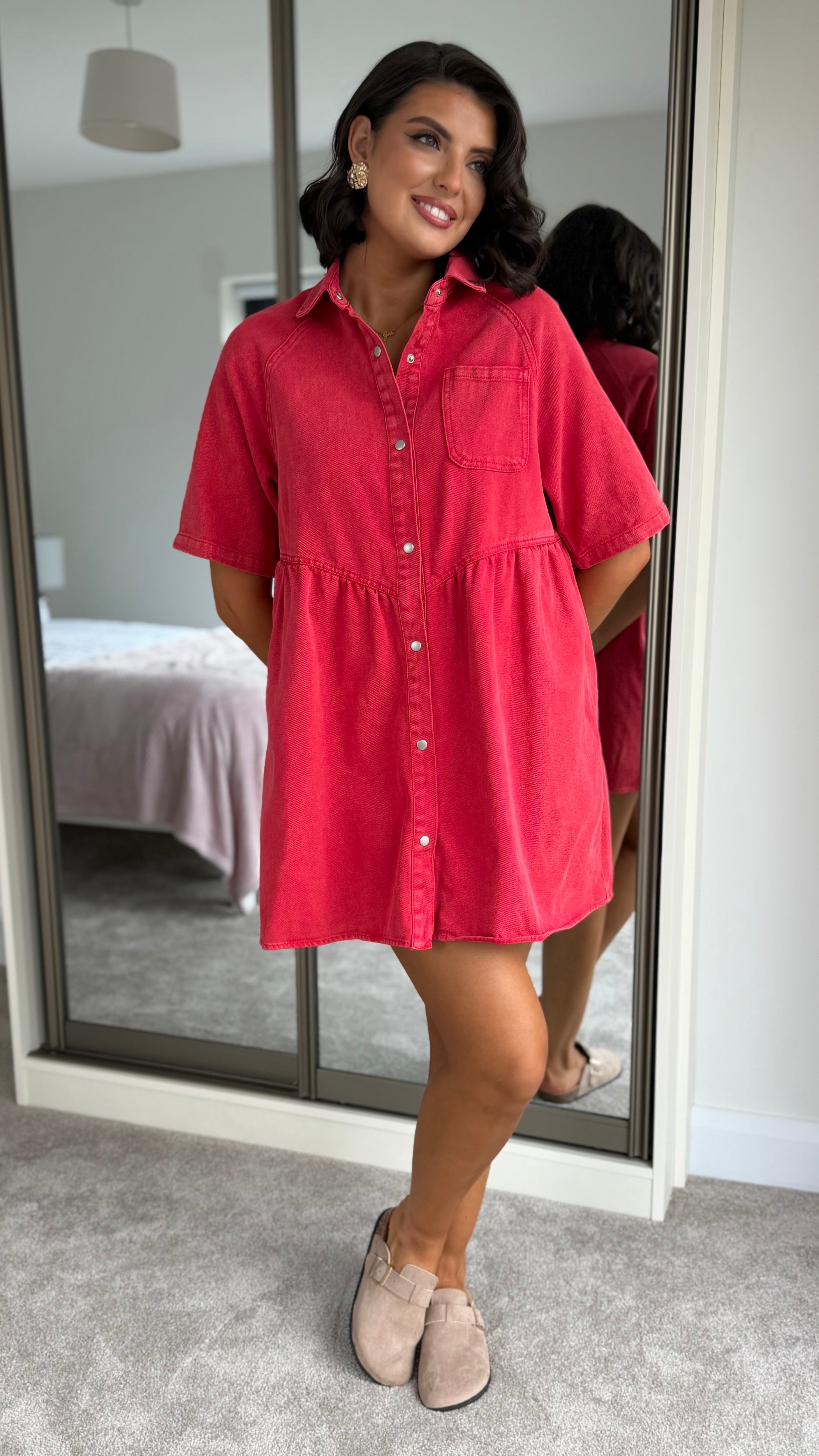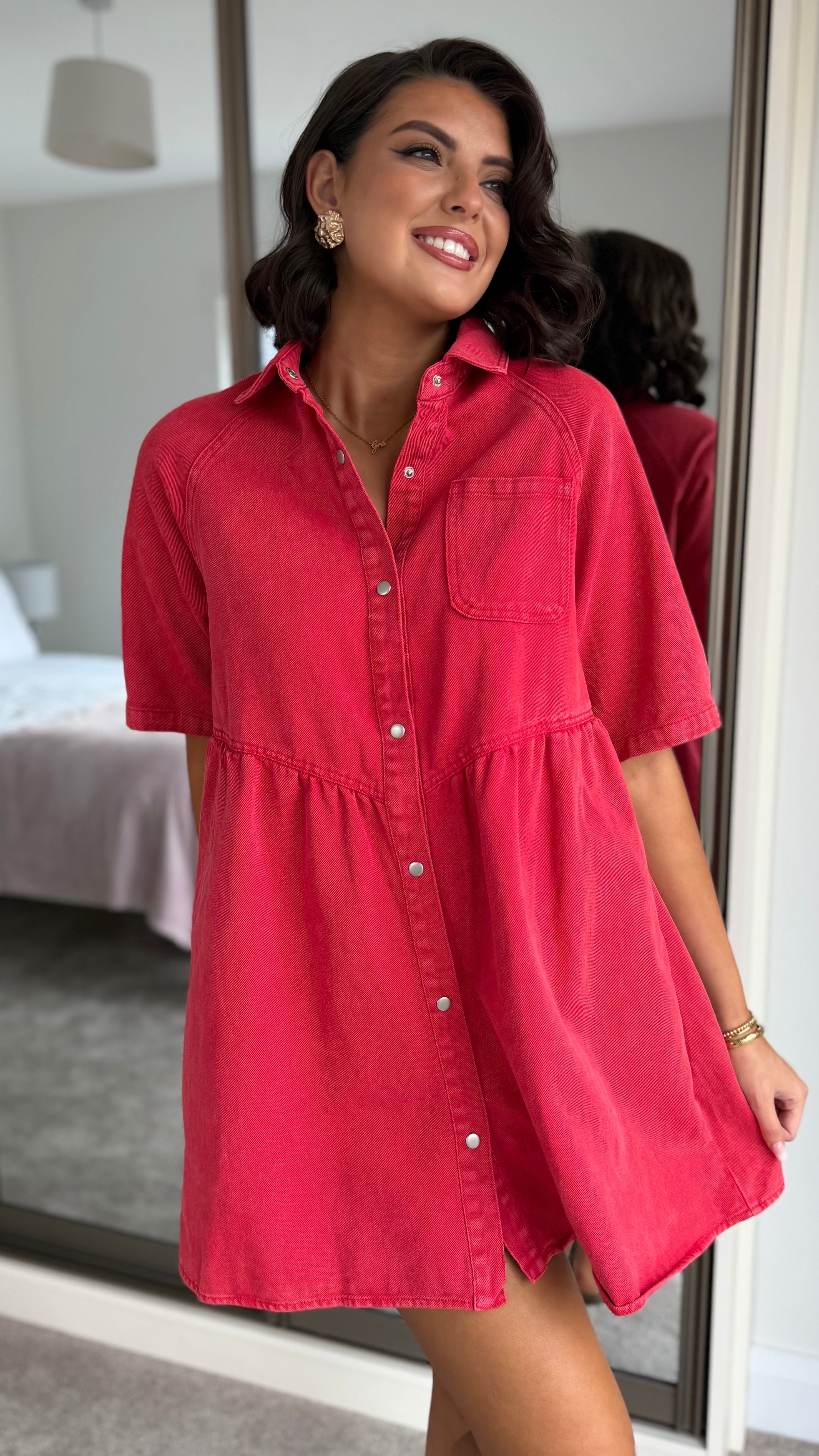 Sawyer Red Denim Button Up Mini Dress
