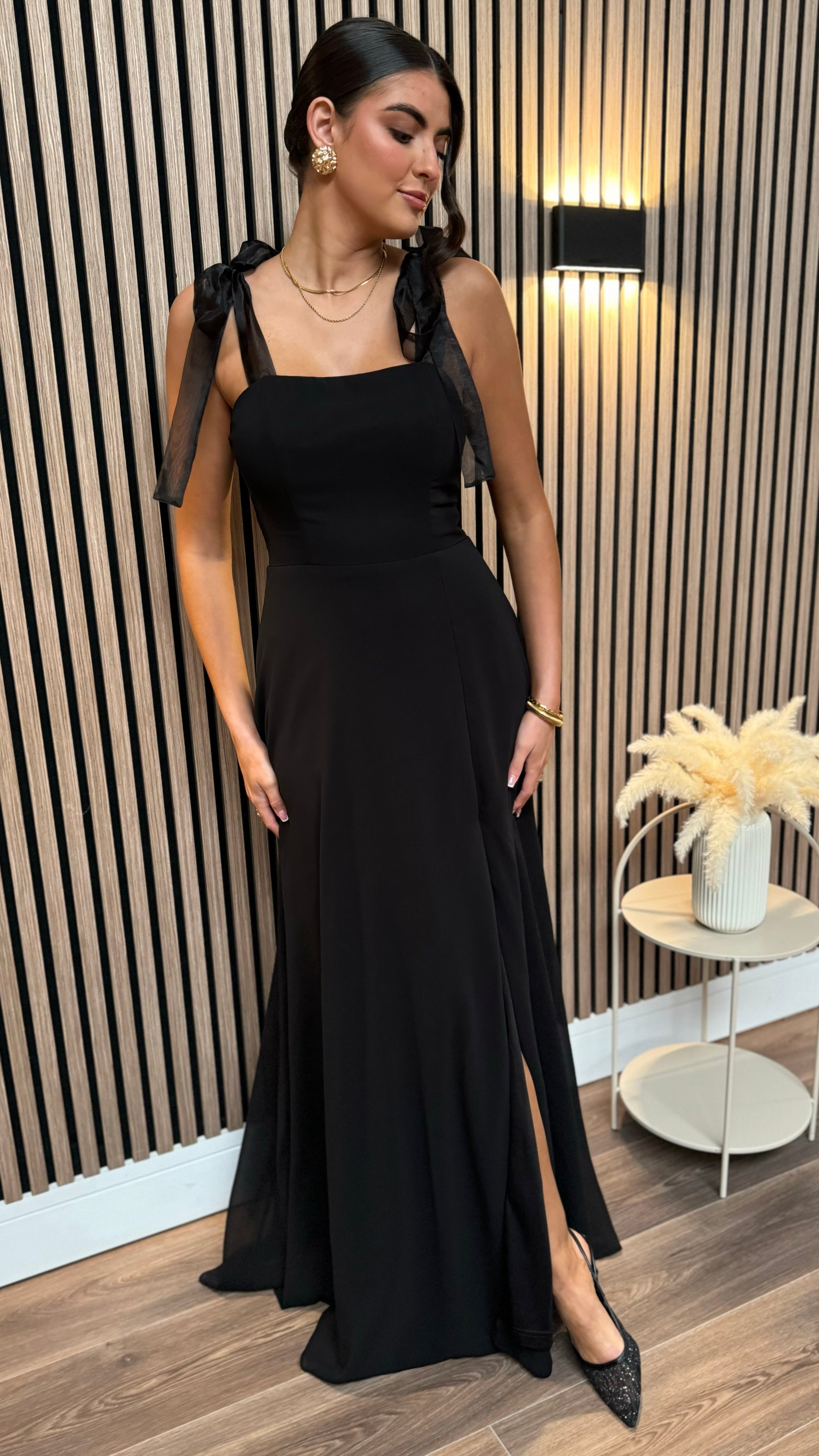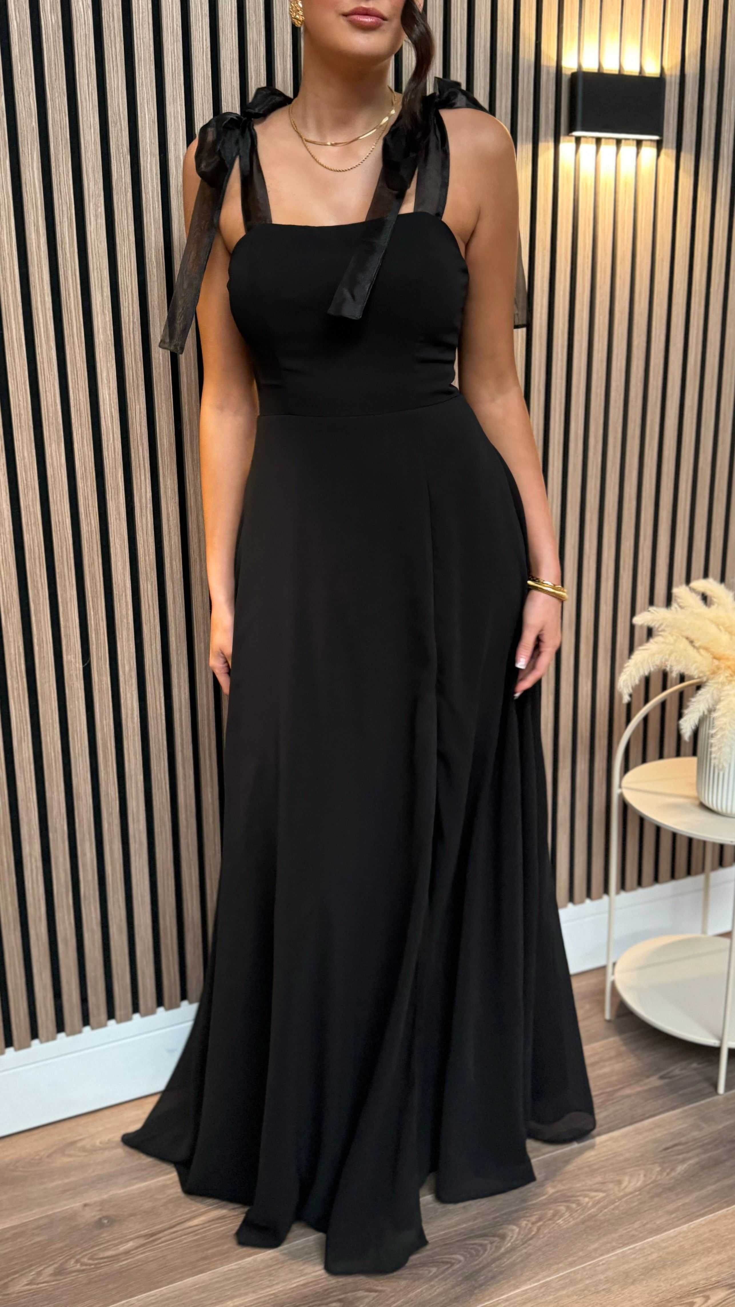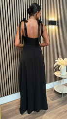 Shauna Black Square Neckline Tie Detail Maxi Dress