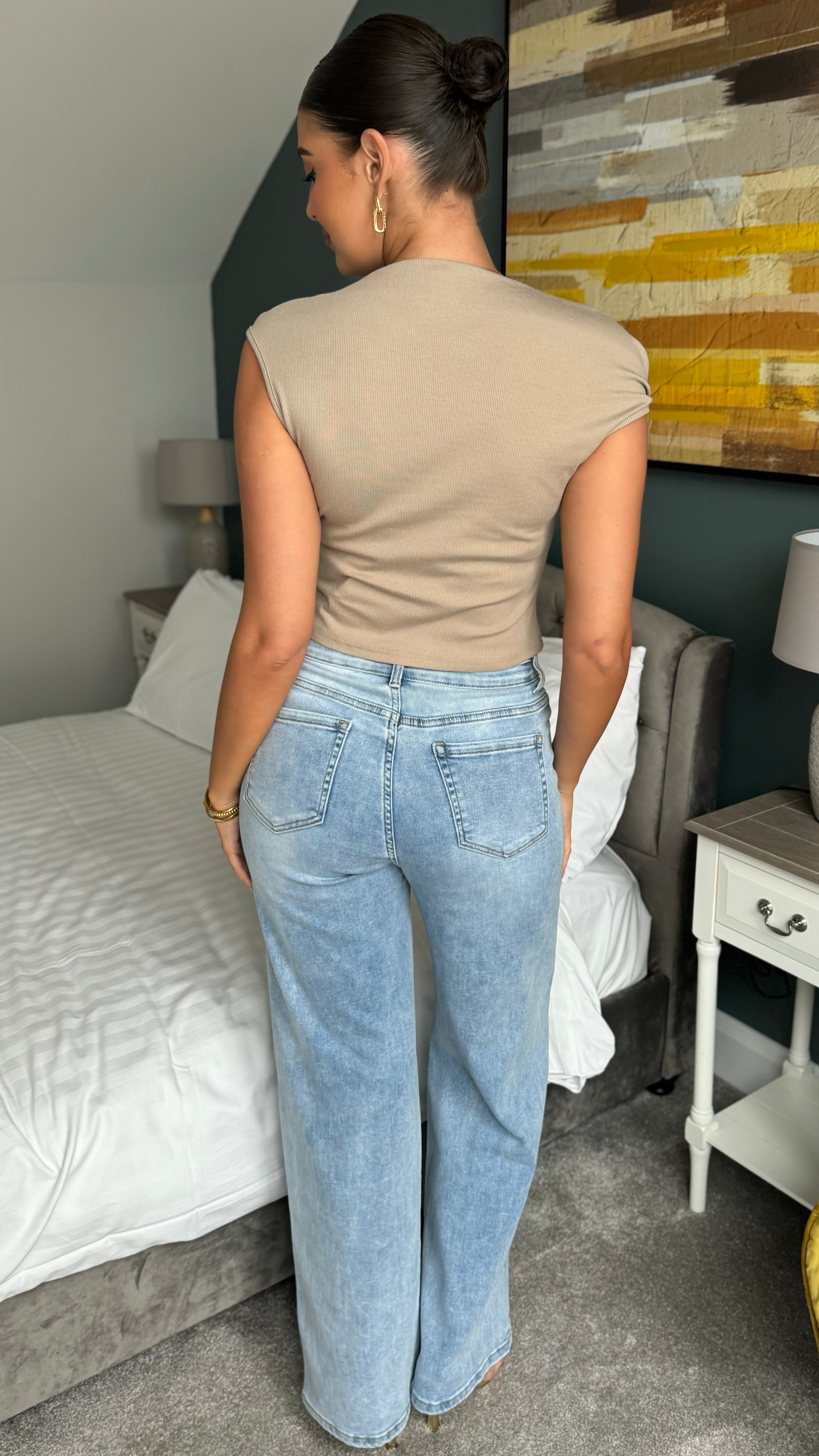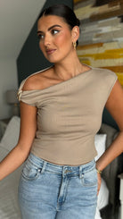 Sophia Taupe Asymmetric Neckline Top