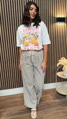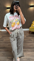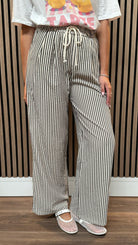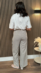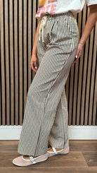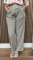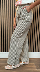Get ready to slay in these Vanessa Black & Cream Stripe Straight Leg Trousers! With an elasticated and drawstring waist, comfort and style go hand in hand. Perfect for a day at the office or a night out with the squad! 🌟