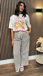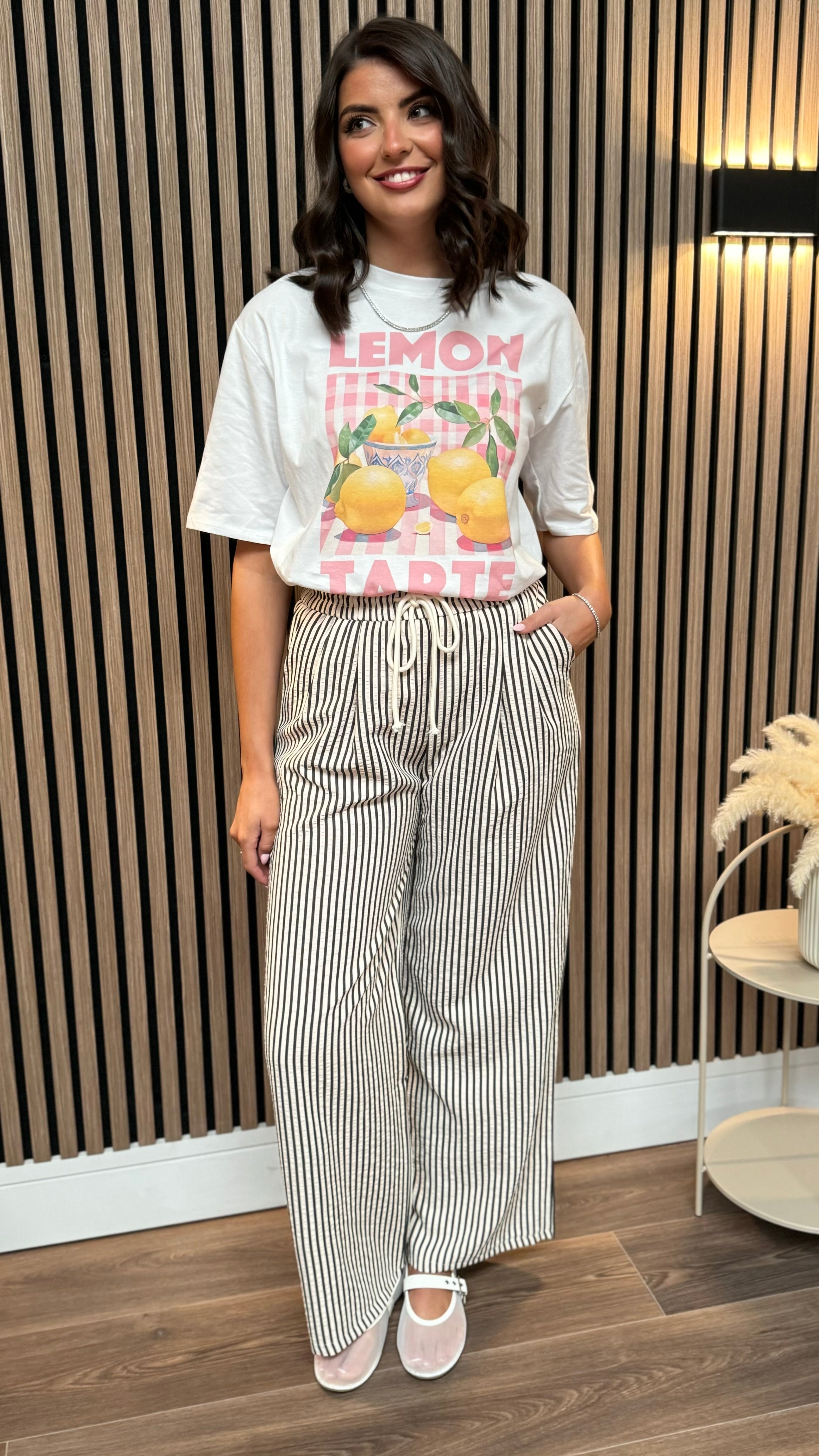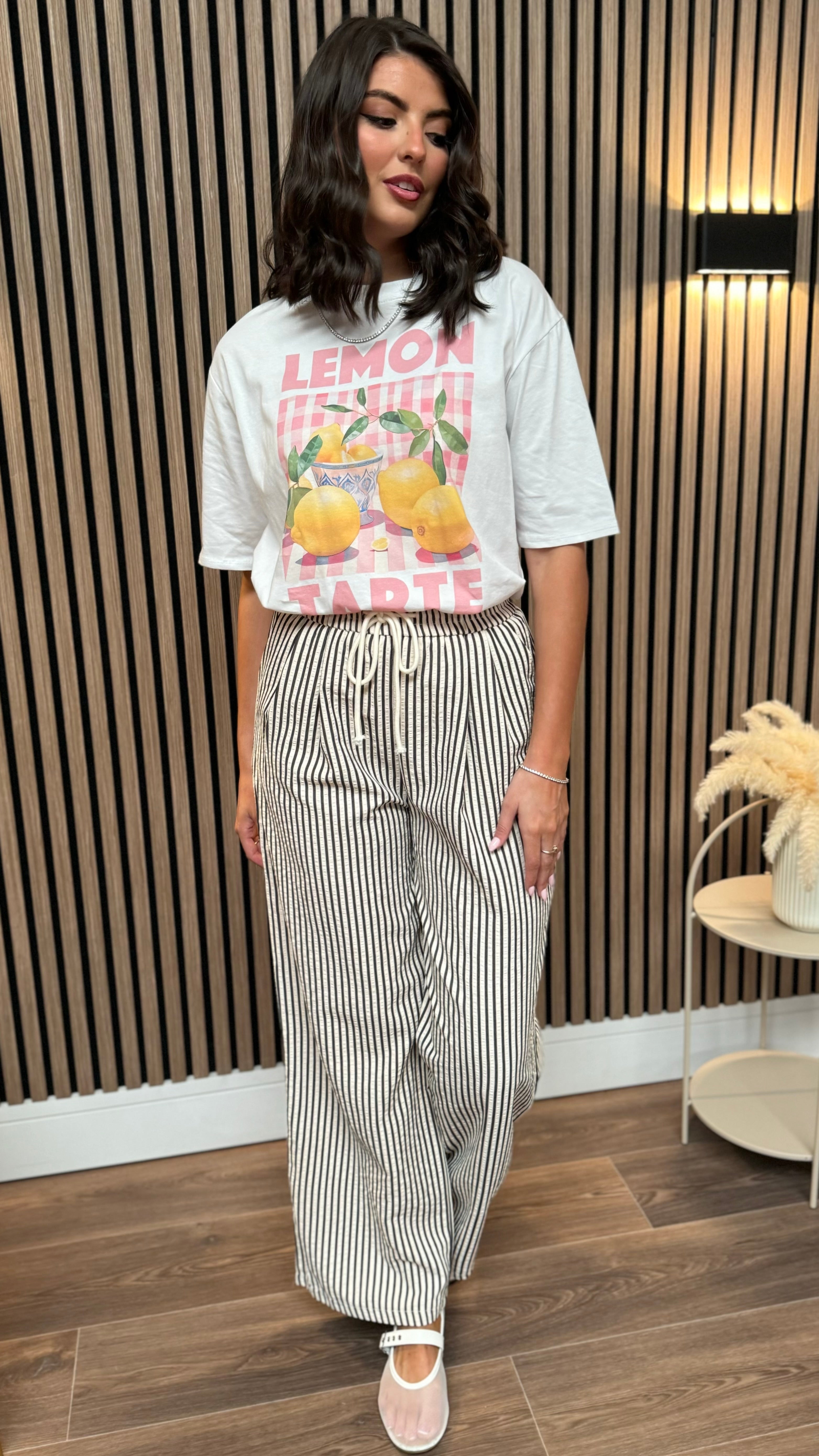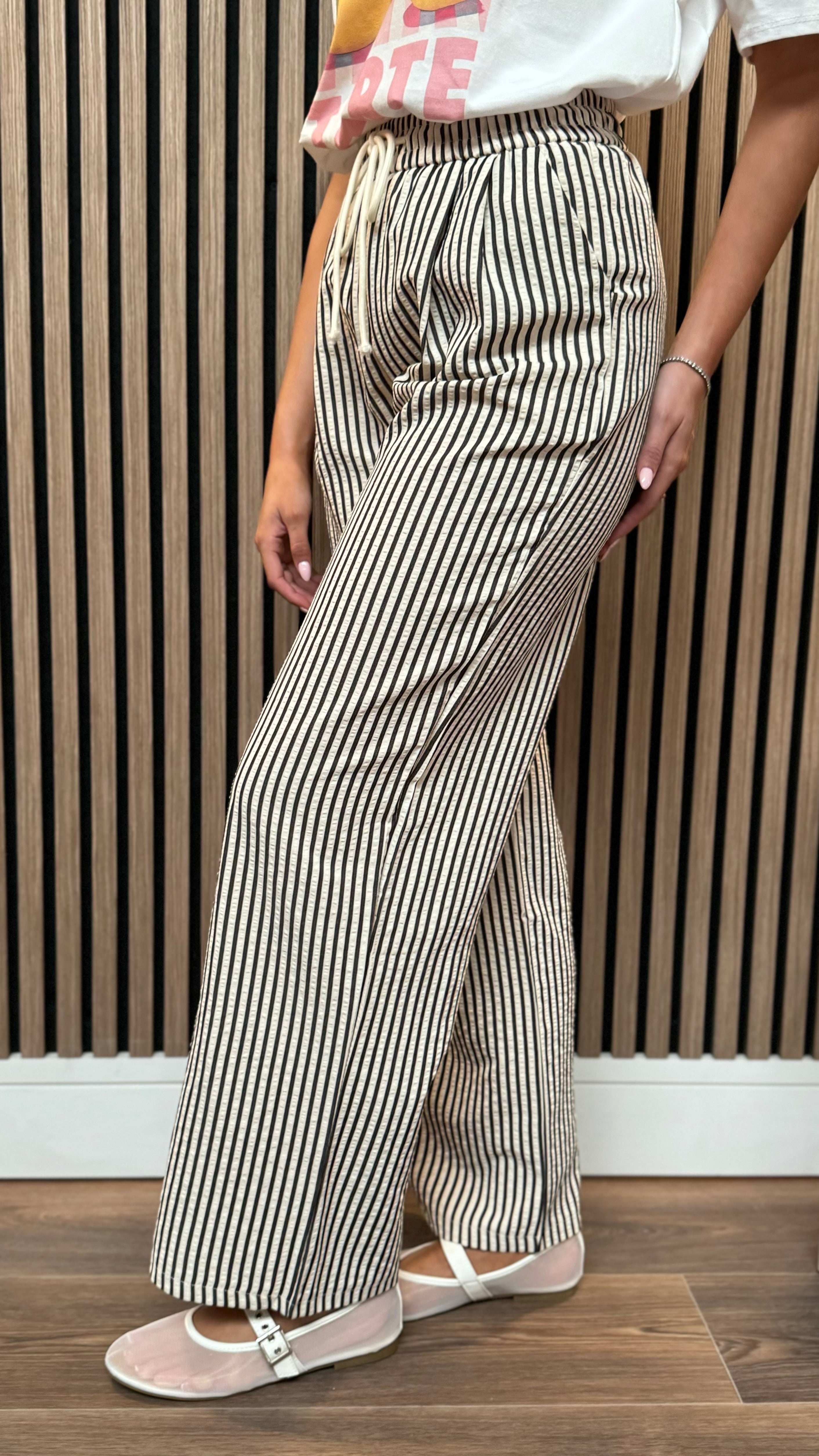 Vanessa Black & Cream Stripe Straight Leg Trouser