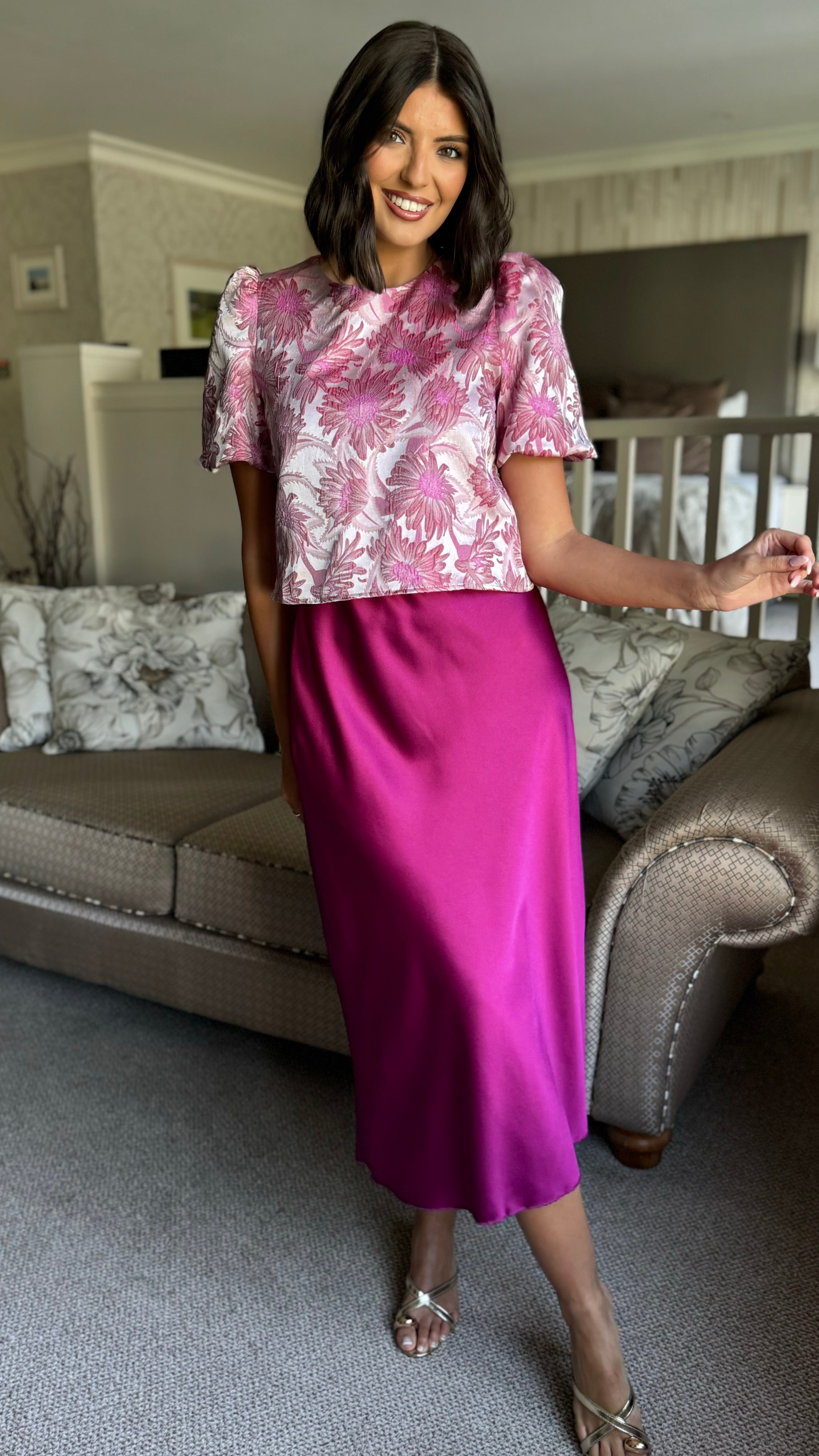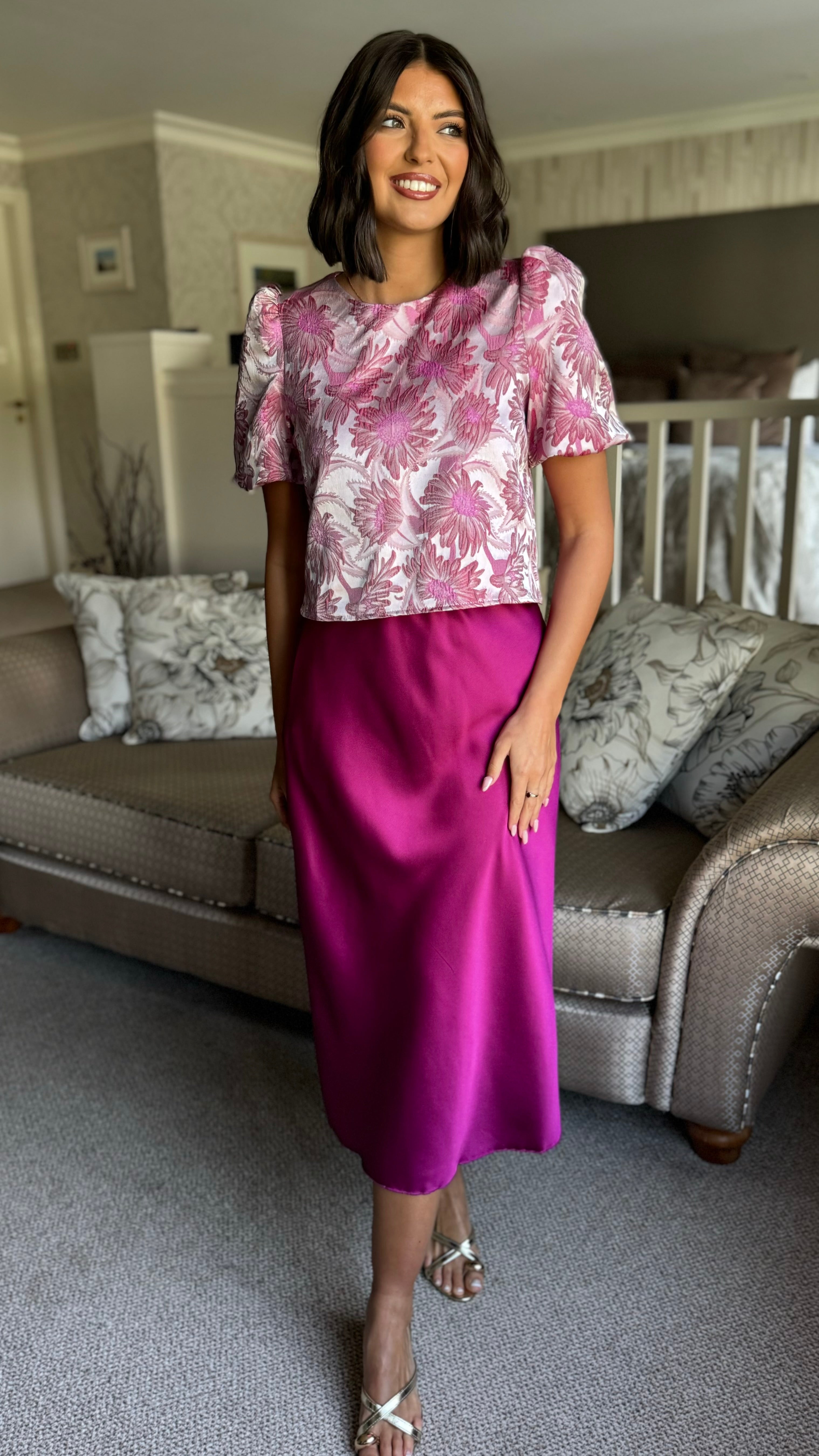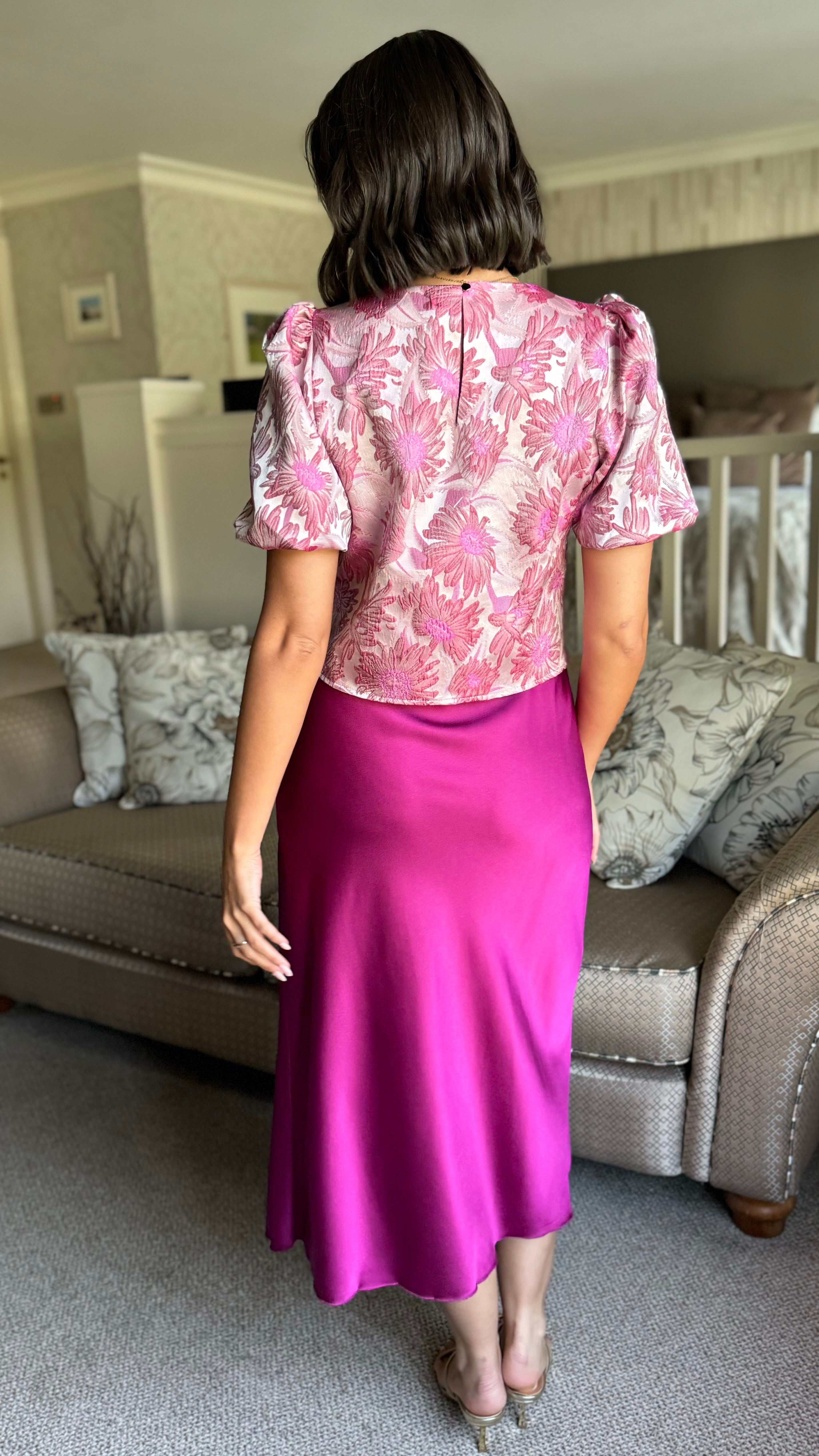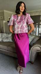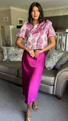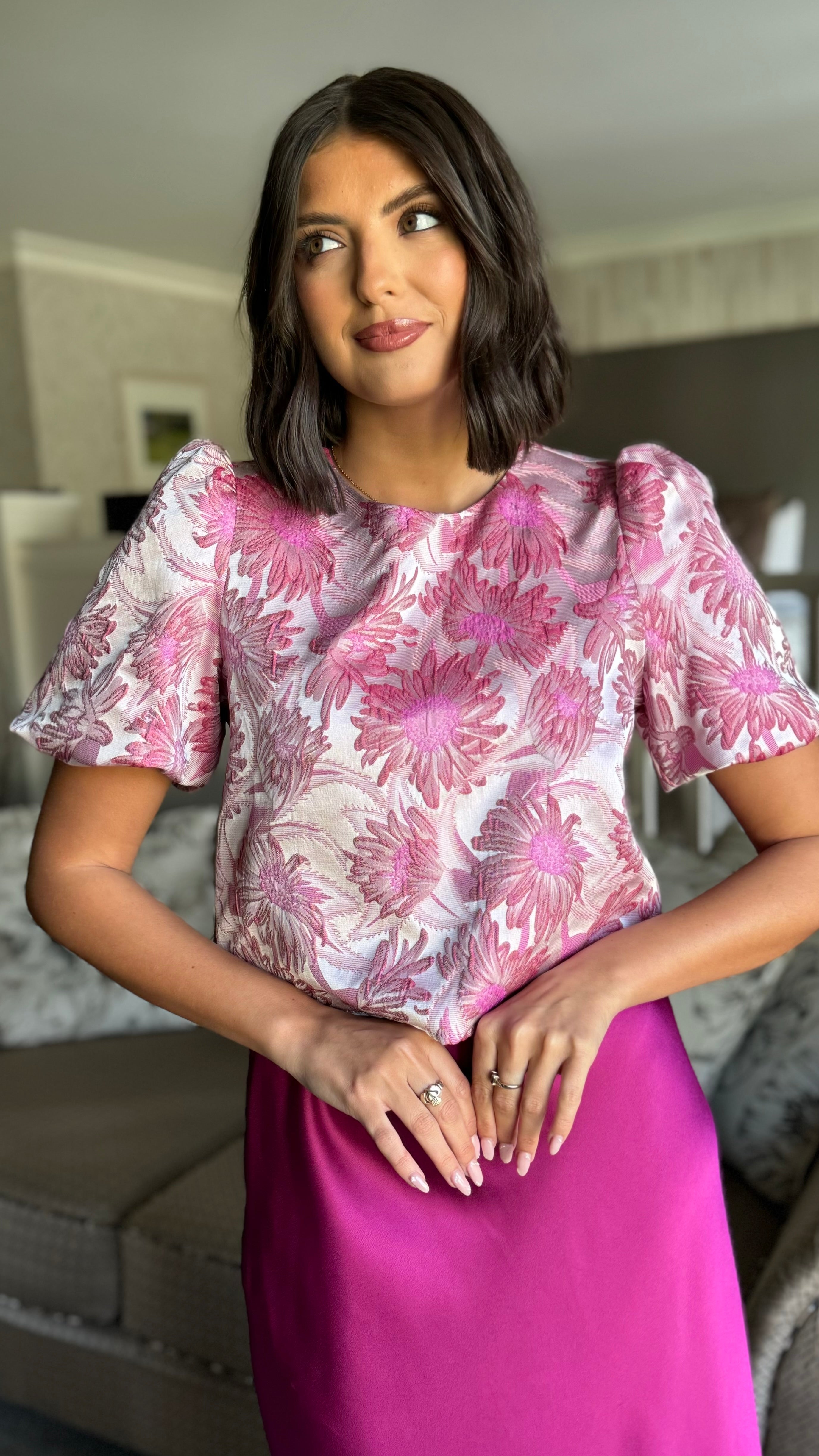 Winter Rose Pink Floral Brocade Puff Sleeve Top (PRE ORDER)