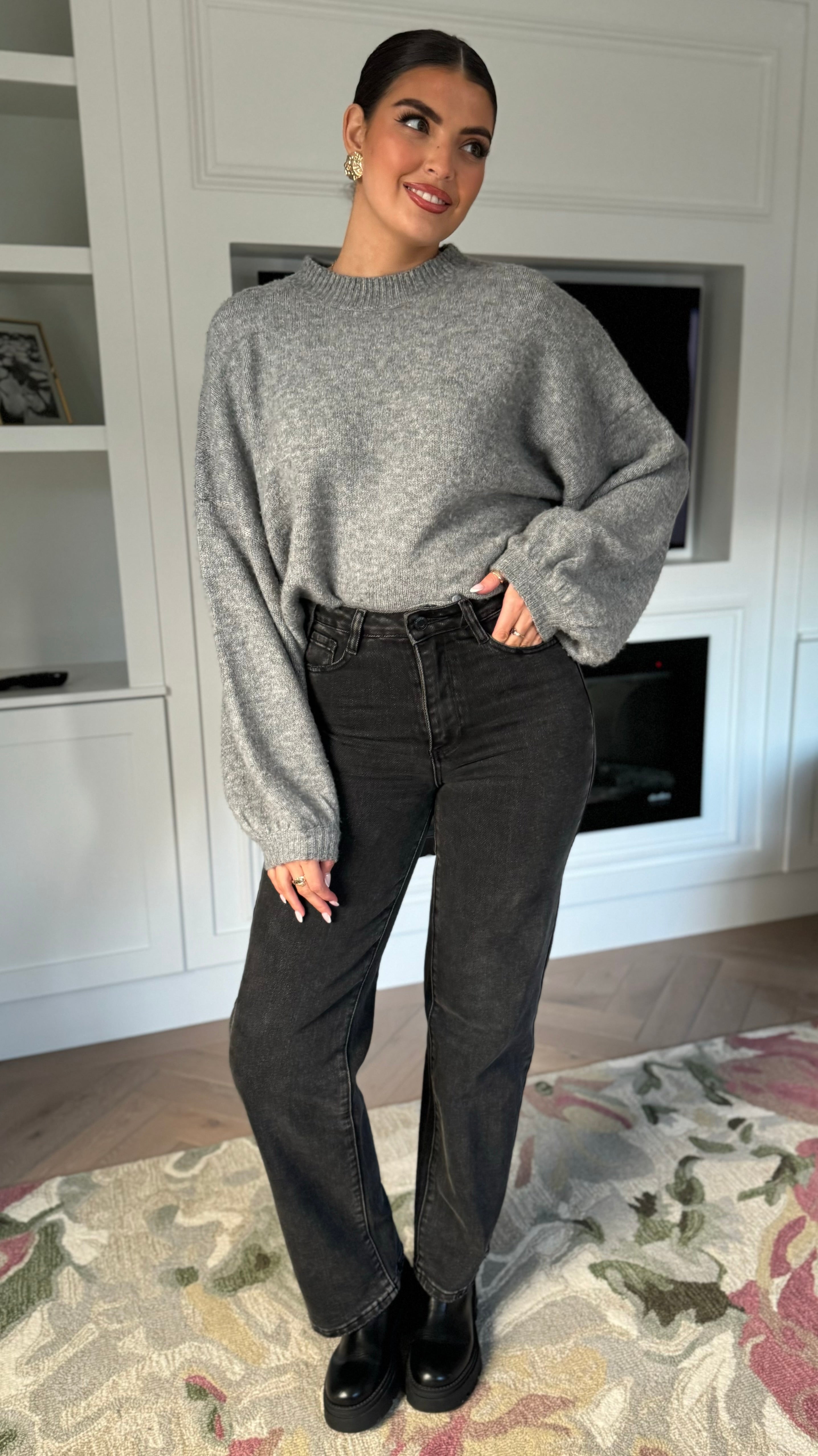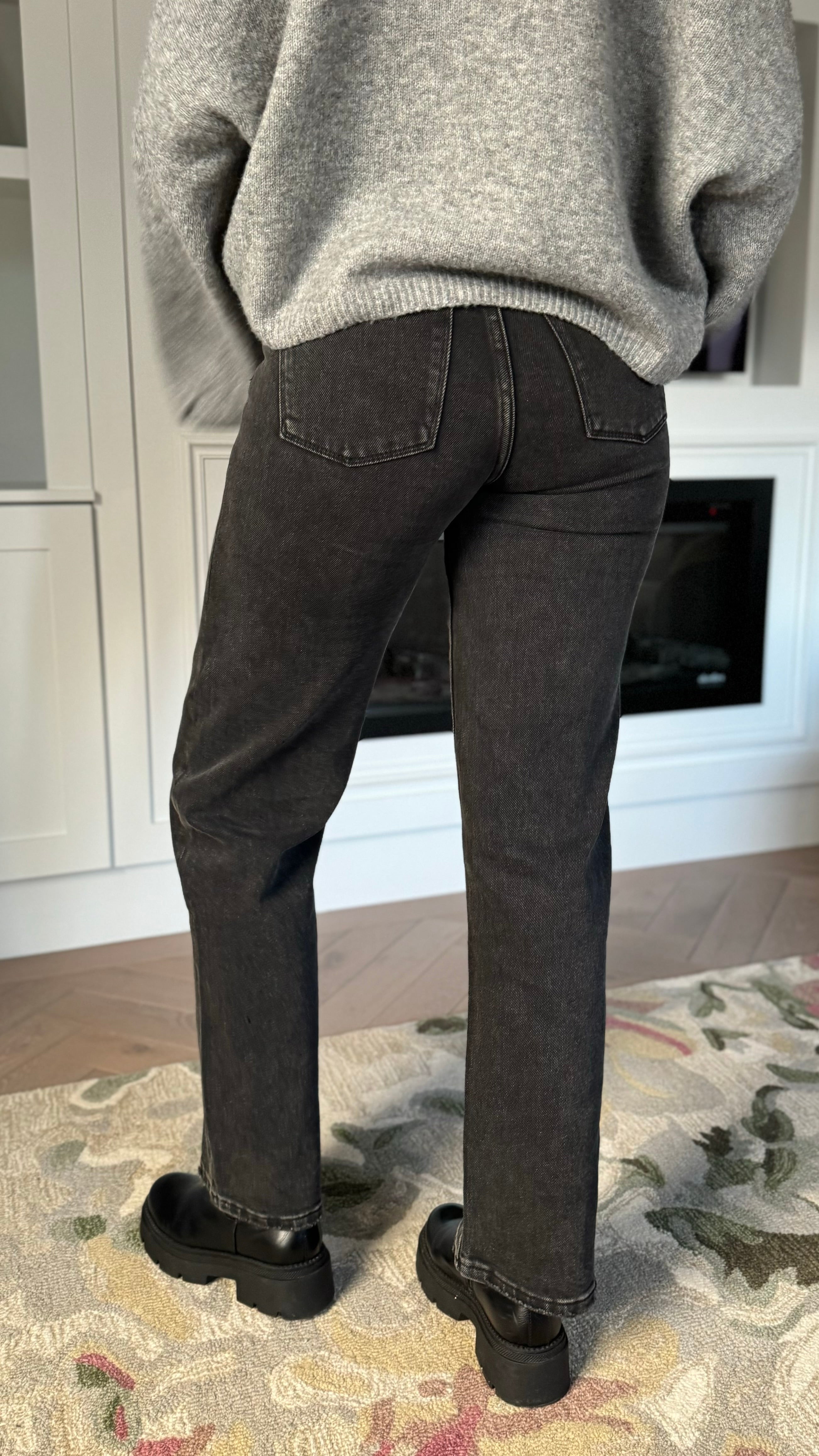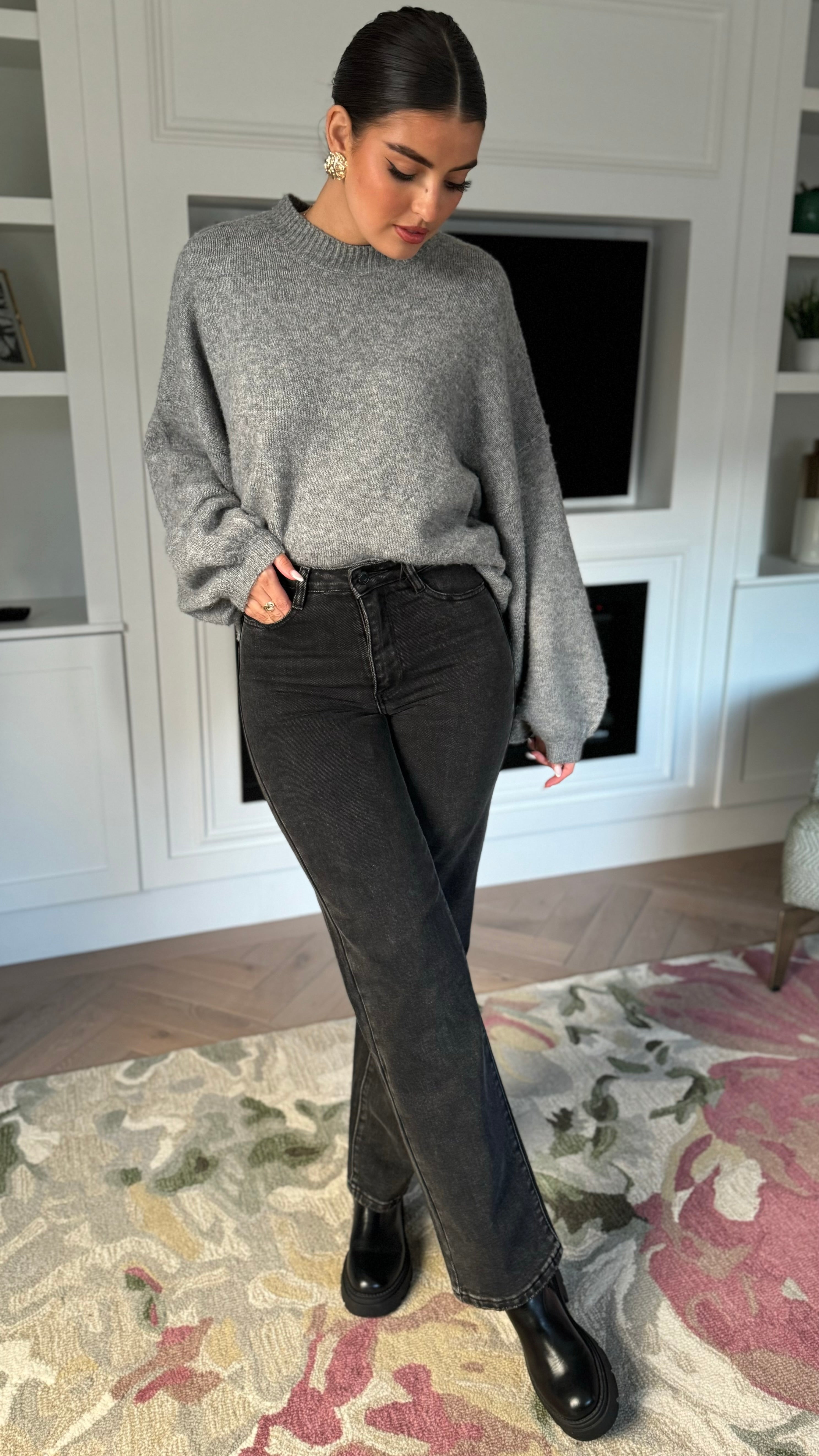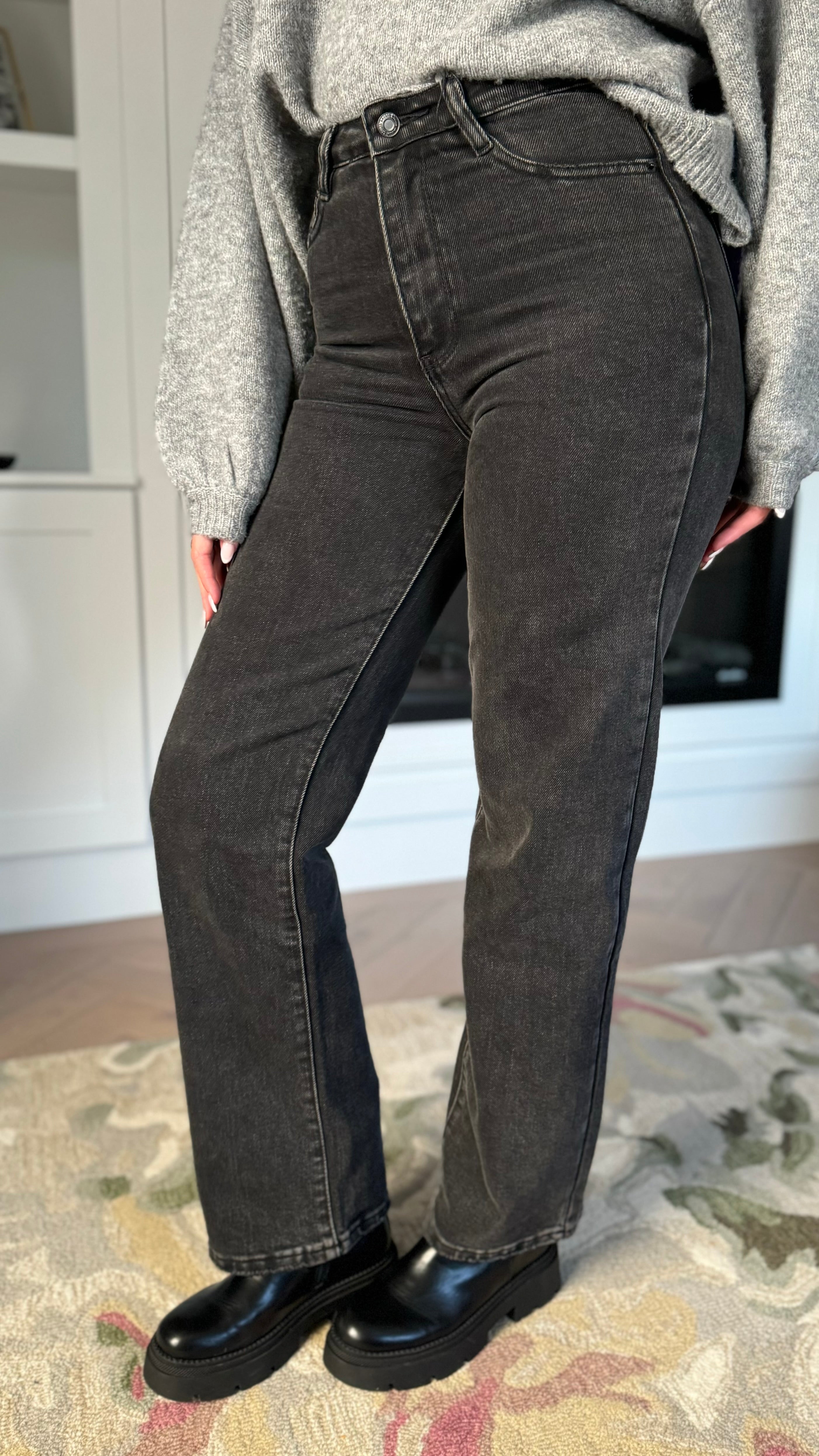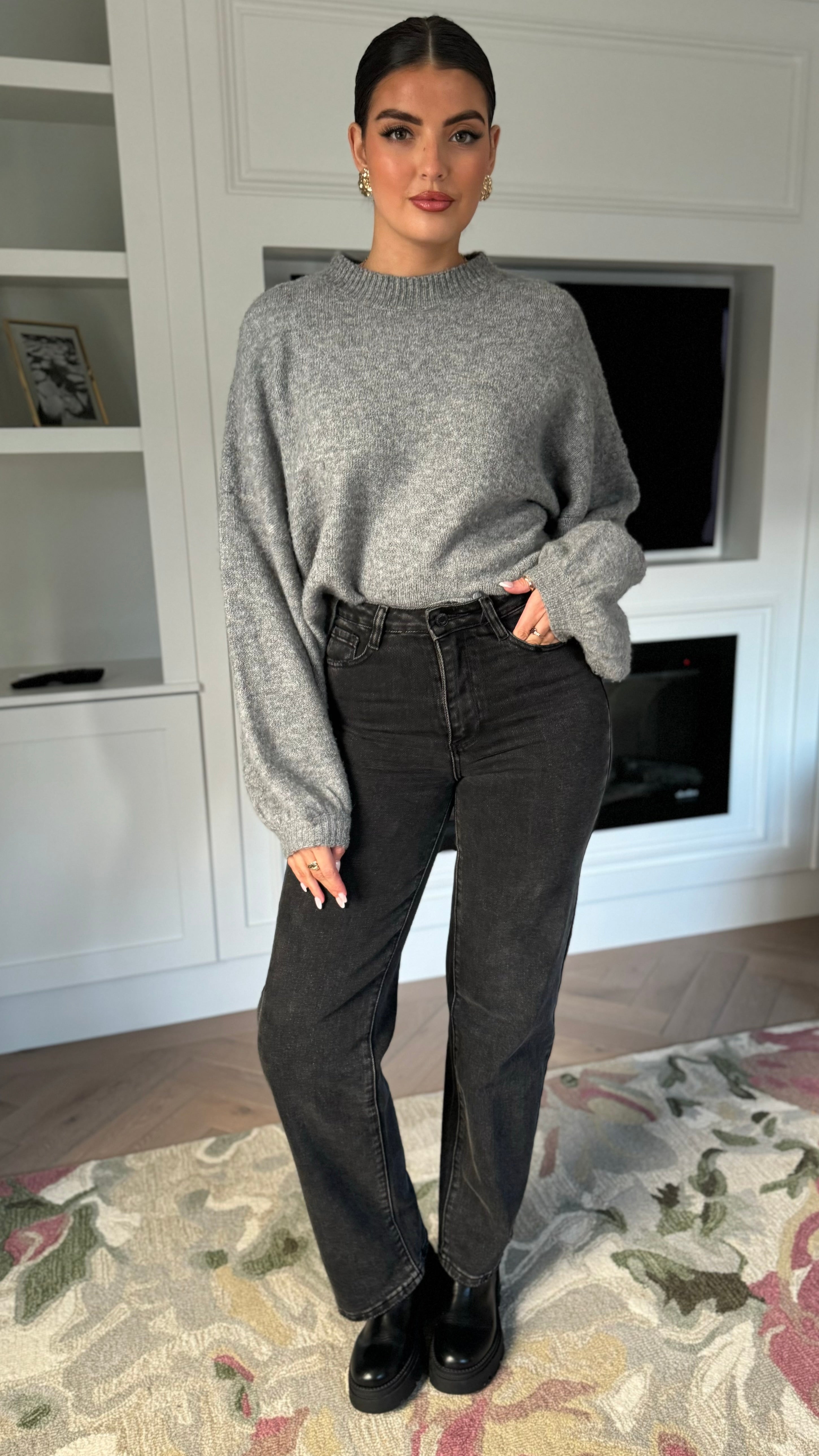 Introducing the Xaviera Dark Grey Straight Leg Jeans – your new go-to for effortless cool. These high-waisted beauties feature a flattering straight leg cut that works with everything in your wardrobe, while the faded wash adds that perfectly lived-in vibe. The charming grey button detail brings a subtle twist that'll have everyone asking where you got them. Comfortable, stylish, and ready for whatever the day throws at you.